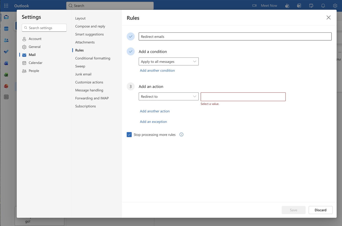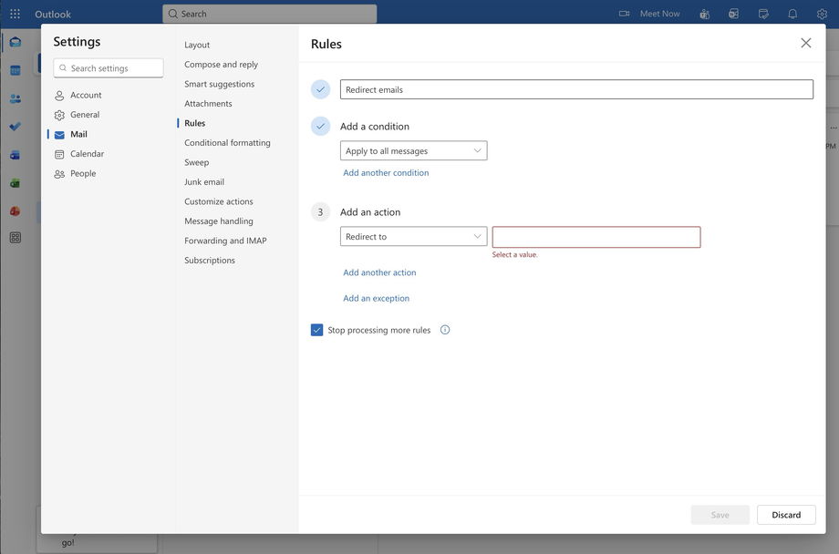 How to set up redirect in Outlook